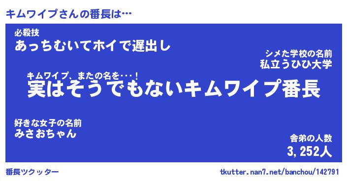 | ファンタジー風あだ名 | 『キムフェル』『エターナルキムワイプー』 |