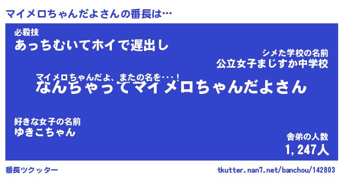 | ポケモン風あだ名 | 『マイチュウ』『マイメダネ』 |