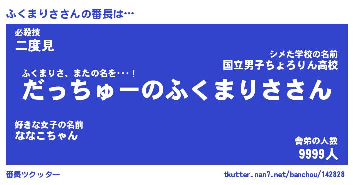 | ポケモン風あだ名 | 『フクチュウ』『フクマダネ』 |