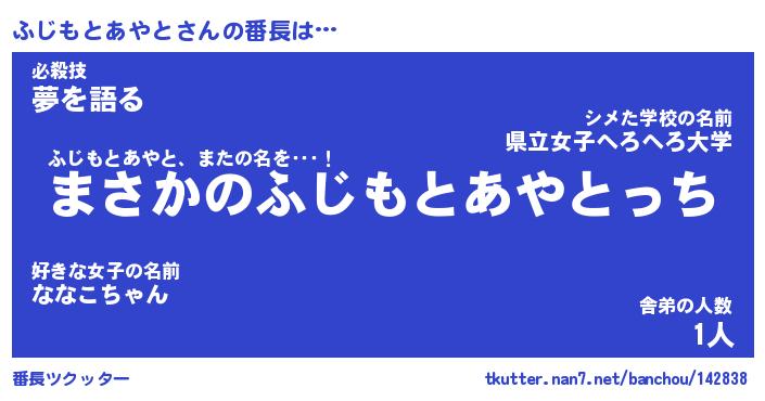 | 恥ずかしいあだ名 | 『プリティーふじもとあやと』『ふじちん』 |
