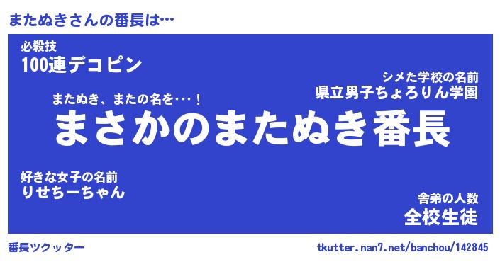 | ヒーロー風カッコイイあだ名 | 『スーパーマタヌキ』『暗黒騎士マタ』 |