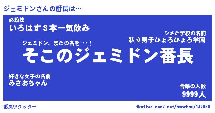 | 肩書あだ名 | 『ジェミドン社長』『ジェミドン総理大臣』 |