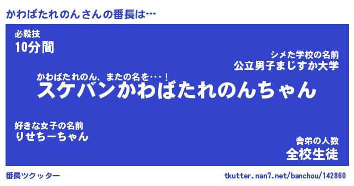 | 肩書あだ名 | 『かわばたれのん御曹司』 |