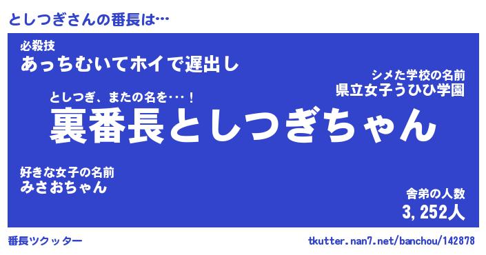 | 意味不明あだ名 | 『ペロリンとしつぎ』『永久保存としつぎ』 |