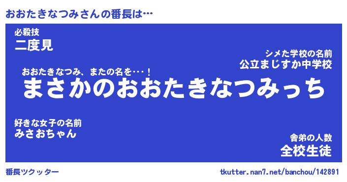 | 男性向けラノベタイトル風あだ名 | 『おおたきなつみの憂鬱』 |