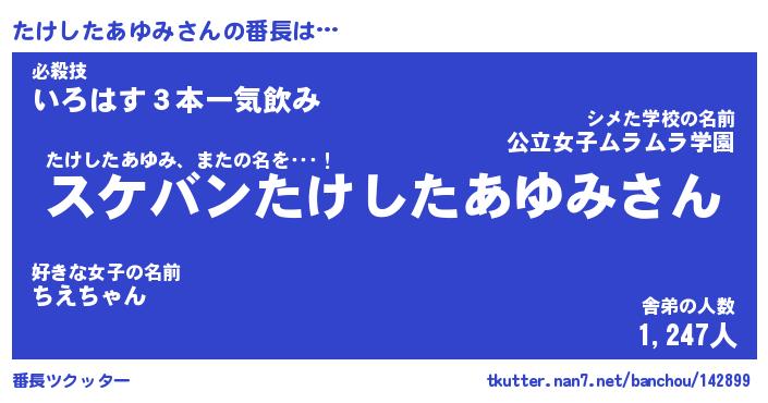 | ヘコむあだ名 | 『たけにー』『なまこ酢』『たけを』 |