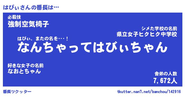 | ピコ太郎風あだ名 | 『ハコ次郎』『ピハ一郎』『ハビ八郎』 |