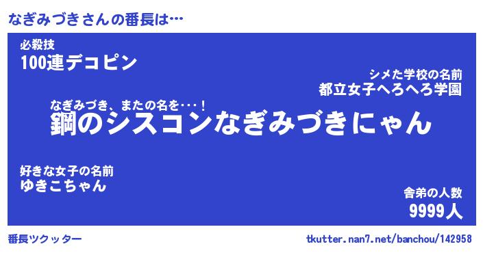 | 伝説のあだ名 | 『封印されしスナイパーなぎみづき』 |