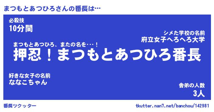 | 肩書あだ名 | 『まつもとあつひろ店長』 |