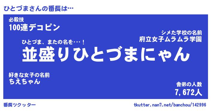| ファンタジー風あだ名 | 『ヒトフェル』『エターナルヒトヅマー』 |