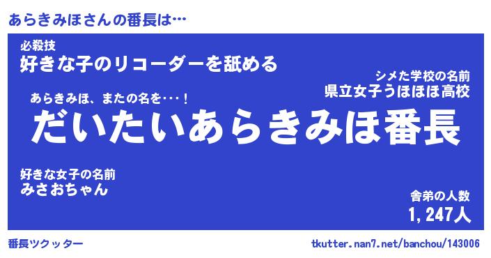 | ヒーロー風カッコイイあだ名 | 『スーパーアラキミホ』『銀牙騎士アラ』 |