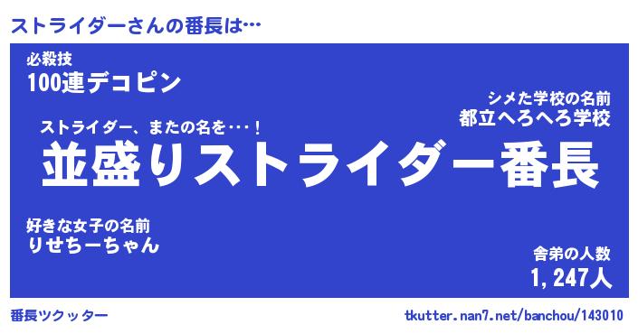 | 肩書あだ名 | 『ストライダー店長』『ストライダー塾長』 |