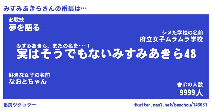 | 伝説のあだ名 | 『封印されし竜騎士みすみあきら』 |