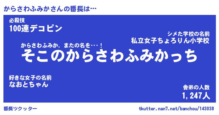 | ヒーロー風カッコイイあだ名 | 『スーパーカラサワフミカ』 |