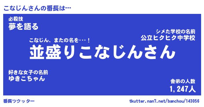 | 欧米人風あだ名 | 『マイケルこなじん』『ウサインこなじん』 |