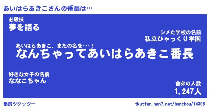 | 意味不明あだ名 | 『ペロリンあいはらあきこ』 |