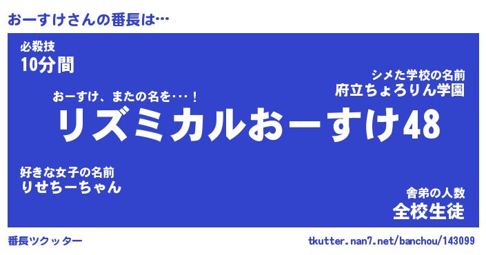 | 意味不明あだ名 | 『ペロリンおーすけ』『永久保存おーすけ』 |