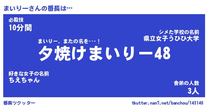| ヘコむあだ名 | 『まいもー』『酢こんぶ』『まいっぺ』 |