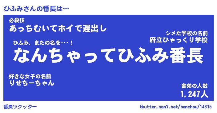 | ヒーロー風カッコイイあだ名 | 『スーパーヒフミ』『ウルトラひふみマン』 |