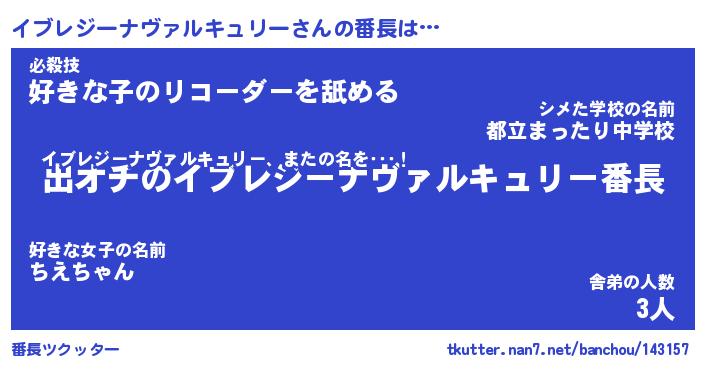 | ヒーロー風カッコイイあだ名 | 『スーパーイブレジーナヴァルキュリー』 |