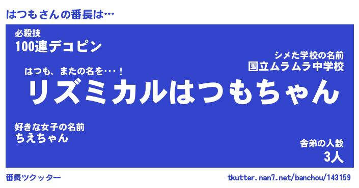 | 伝説のあだ名 | 『伝説のスナイパーはつも』 |