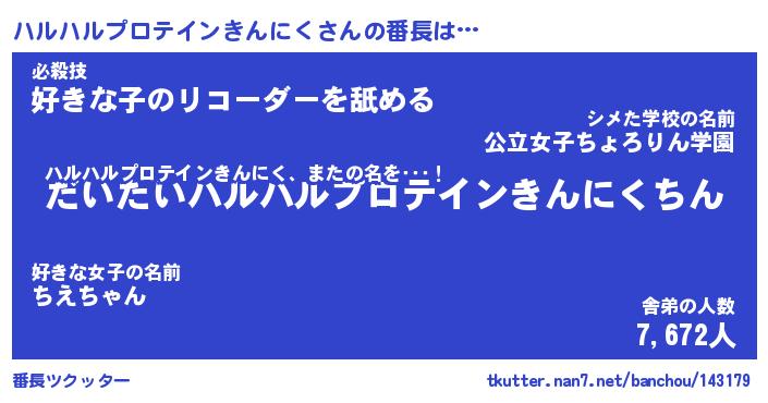 | ヒーロー風カッコイイあだ名 | 『スーパーハルハルプロテインキンニク』 |
