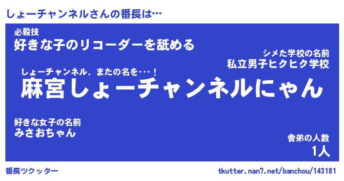 | 伝説のあだ名 | 『不死鳥の傭兵しょーチャンネル』 |