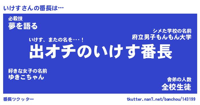 | ヒーロー風カッコイイあだ名 | 『スーパーイケス』『ウルトラいけすマン』 |