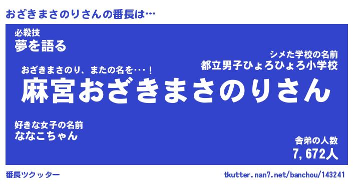 | 男性向けラノベタイトル風あだ名 | 『オザキマサノリアートオンライン』 |
