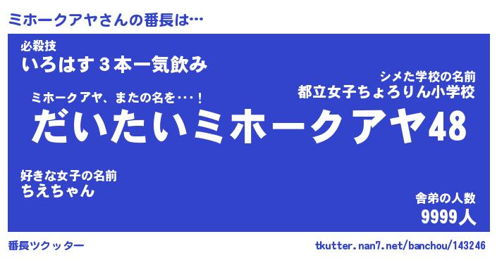 | 肩書あだ名 | 『ミホークアヤ店長』『ミホークアヤ団長』 |