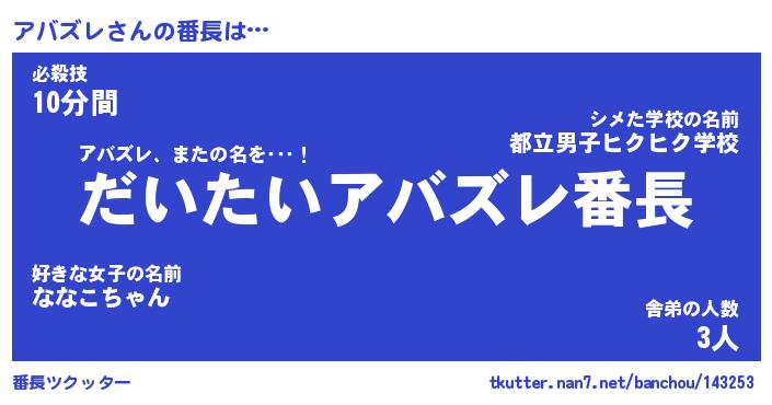 | ヒーロー風カッコイイあだ名 | 『スーパーアバズレ』『魔戒騎士アバ』 |