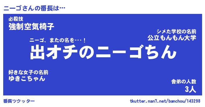 | ポケモン風あだ名 | 『ニーチュウ』『ニーゴダネ』 |