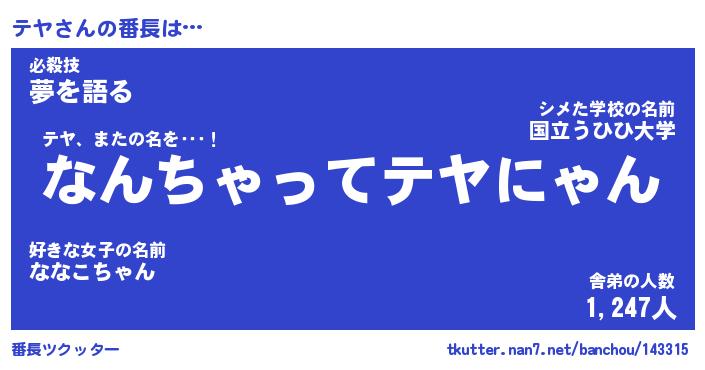 ポケモン風あだ名 | 『テヤチュウ』『テヤダネ』『ヒテヤ』 |