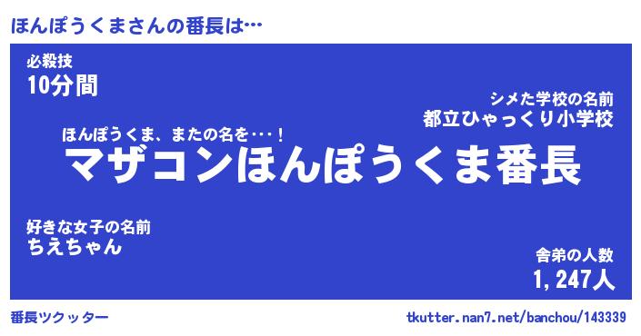 | ヒーロー風カッコイイあだ名 | 『スーパーホンポウクマ』『炎刃騎士ホン』 |