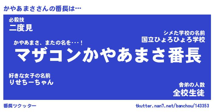 | ファンタジー風あだ名 | 『カヤフェル』『エターナルカヤアマサー』 |