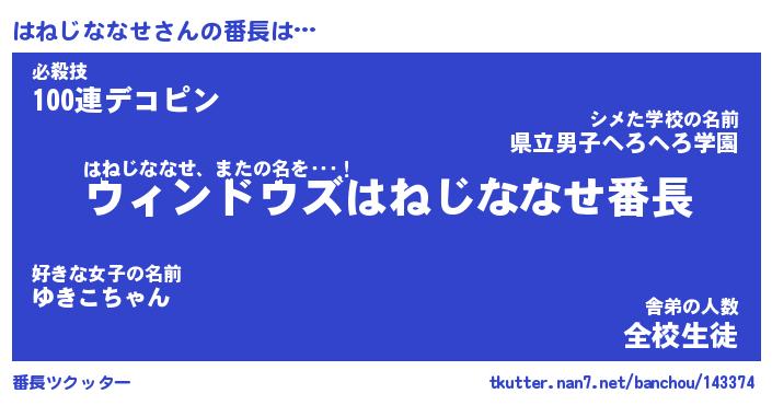 | 肩書あだ名 | 『はねじななせCEO』『はねじななせ先生』 |