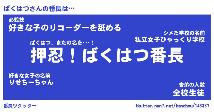 | ファンタジー風あだ名 | 『バクフェル』『エターナルバクハツー』 |