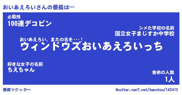 | ヘコむあだ名 | 『おいにゅー』『つくし』『おい太郎』 |
