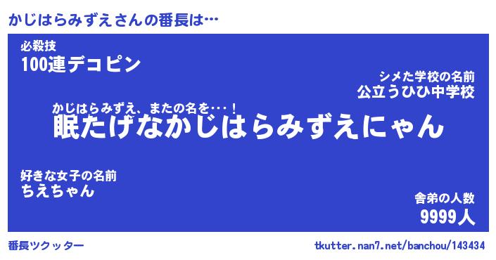 | ヘコむあだ名 | 『かじにゅー』『なまこ酢』『かじを』 |