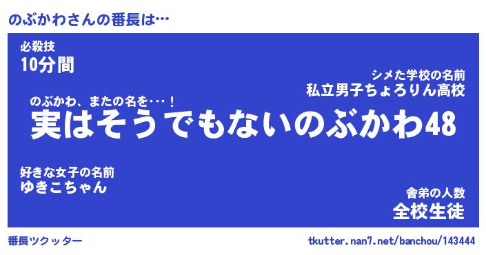 | ヘコむあだ名 | 『のぶもー』『つくし』『のぶっ子』 |