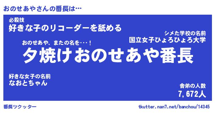 | 肩書あだ名 | 『おのせあや社長』『おのせあや国家主席』 |