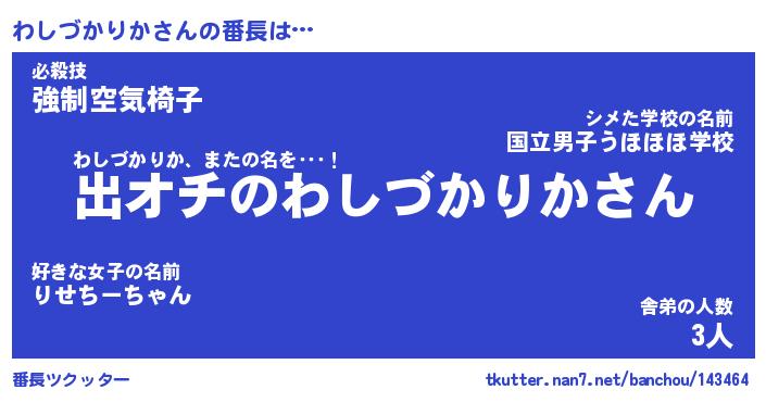 | 肩書あだ名 | 『わしづかりか店長』『わしづかりか班長』 |