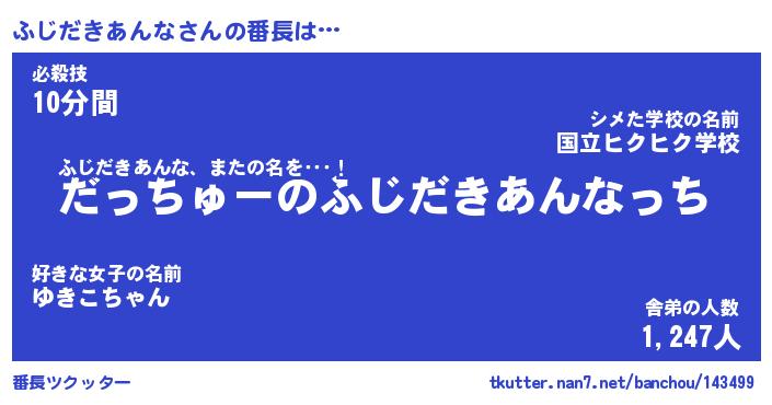 | 恥ずかしいあだ名 | 『プリティーふじだきあんな』『ふじちん』 |