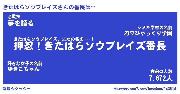 | 伝説のあだ名 | 『封印されし傭兵きたはらソウブレイズ』 |