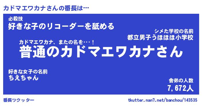 | 伝説のあだ名 | 『不死鳥のスナイパーカドマエワカナ』 |