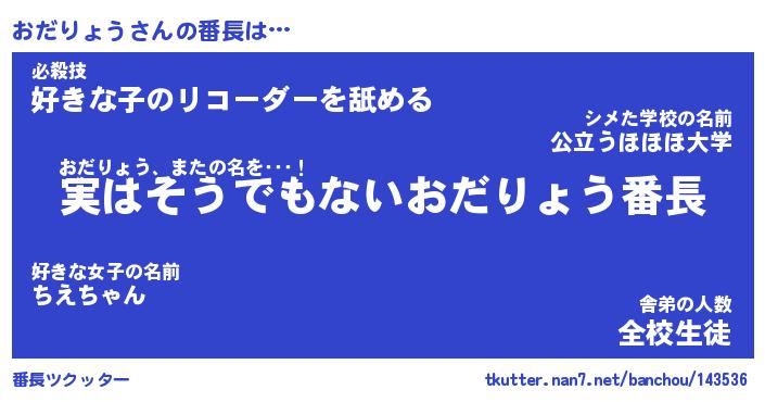 | ヘコむあだ名 | 『おだふぇ~』『酢こんぶ』『おだを』 |