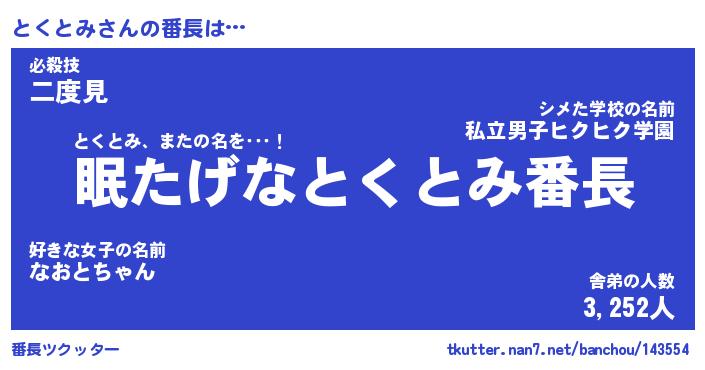 | 意味不明あだ名 | 『ペロリンとくとみ』『永久保存とくとみ』 |