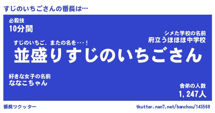 | 伝説のあだ名 | 『不死鳥のスナイパーすじのいちご』 |