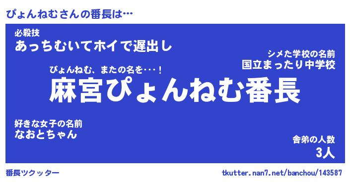 | 伝説のあだ名 | 『不死鳥のスナイパーぴょんねむ』 |