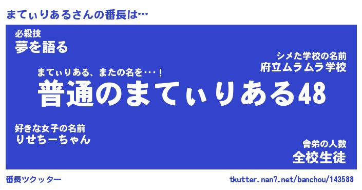 | 肩書あだ名 | 『まてぃりある社長』『まてぃりある団長』 |